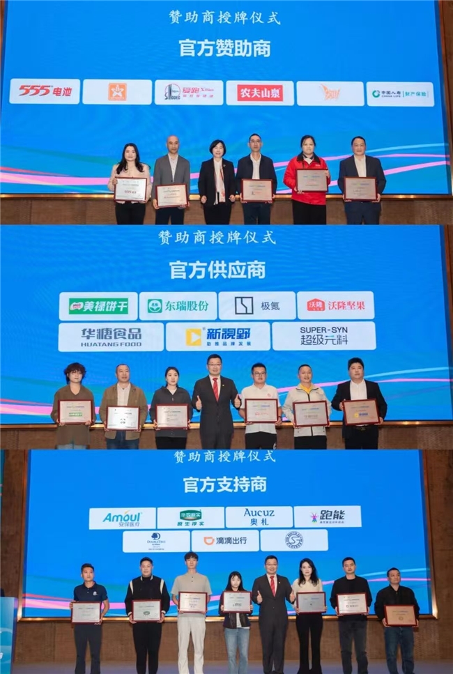 2025河源萬綠湖馬拉松也得到了眾多企業(yè)的鼎力支持,包括全民健身支持單位中國(guó)體育彩票,頂級(jí)合作伙伴廣州輕工集團(tuán)、中國(guó)農(nóng)業(yè)銀行河源分行,官方贊助商555電池、天禾股份、中國(guó)石化、農(nóng)夫山泉、中國(guó)人壽財(cái)產(chǎn)保險(xiǎn)股份有限公司河源中心支公司,獨(dú)家裝備供應(yīng)商雙魚跑步,官方供應(yīng)商美祿餅干、東瑞肉食、極氪汽車、沃隆堅(jiān)果、華糖食品、新視野傳媒、超級(jí)元料,官方支持商安保醫(yī)療、華農(nóng)原實(shí)、奧札、跑能、希爾頓逸林酒店、滴滴出行、桂山機(jī)車俱樂部也派代表出席了發(fā)布會(huì),并從領(lǐng)導(dǎo)手中接過贊助商牌匾。
